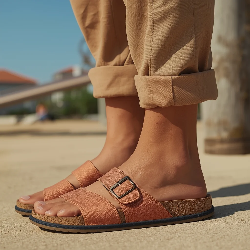 Minimal leather sandals or well-designed slides can keep an outfit looking clean and put-together, while still feeling comfortable and effortless.